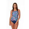Adjustable straps ensure a supportive fit, while removable cups allow customizable shaping. A timeless tankini top that combines style and comfort for your swim collection.