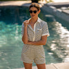 Chic and comfortable, the Heritage Irene Romper is a versatile cover-up designed for poolside lounging or casual resort wear. Its relaxed fit makes it easy to slip on over swimwear.