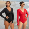 Featuring underwire for lift and structure, removable cups for customizable shaping, and tummy control for a smooth, sculpted silhouette, this swimsuit flatters and supports your shape. The low-leg cut provides added coverage, while UPF 50 protection and long sleeves shield your skin from the sun.