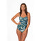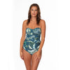 The Palm Toile Flora Bandeau One-Piece Swimsuit is a versatile classic designed to be worn strapless or with removable straps.